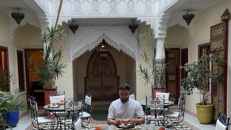 Ervaar de charmante sfeer van een traditionele Marokkaanse riad, met kleurrijke patio’s en rustige binnentuinen.