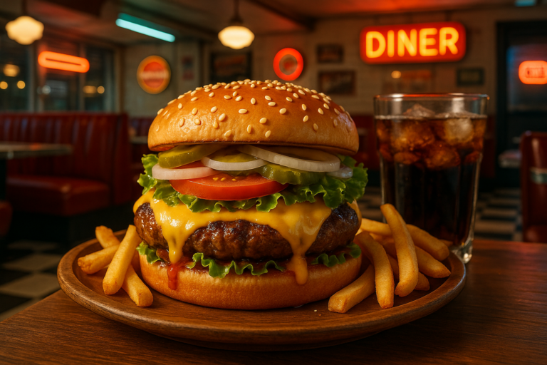 Grote porties, veel smaak en een tikkeltje over-the-top – de Amerikaanse hamburger is een symbool van comfort food, het liefst in een klassieke diner langs route 66.