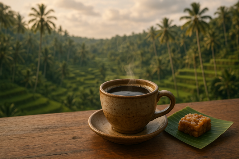 Koffie gemaakt van bonen die zijn ‘verwerkt’ door een civetkat – zacht, aards en exclusief. Een zeldzame smaakervaring in een groene, rustige omgeving.
