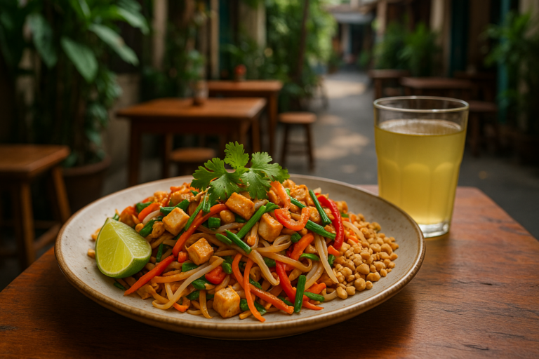 Een van de populairste Thaise streetfoodgerechten: gebakken rijstnoedels met pinda’s, ei, limoen en soms garnalen. Snel bereid, explosief van smaak, en onmisbaar op elke lokale markt.