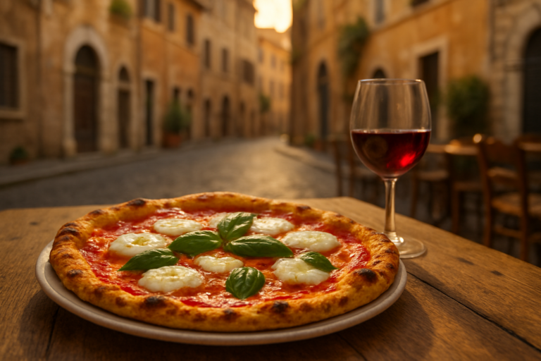 De Napolitaanse pizza is simpel en perfect: een dunne bodem, tomatensaus, verse mozzarella en een paar blaadjes basilicum. Minder is hier echt meer.