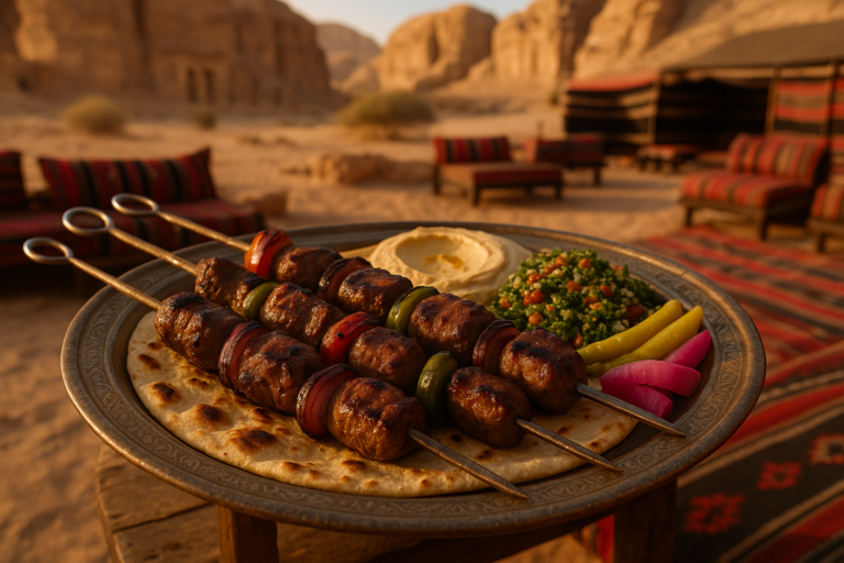 Gekruid vlees, gegrild aan een spies en vaak geserveerd met rijst of platbrood. Een gerecht dat draait om eenvoud, vuur en smaakvolle traditie.
