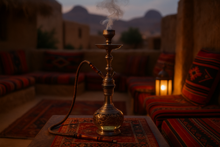Een rustige avondactiviteit waarbij tabak met fruitsmaak langzaam wordt gerookt via een waterpijp. Het draait om ontspanning, delen en gesprekken in goed gezelschap.